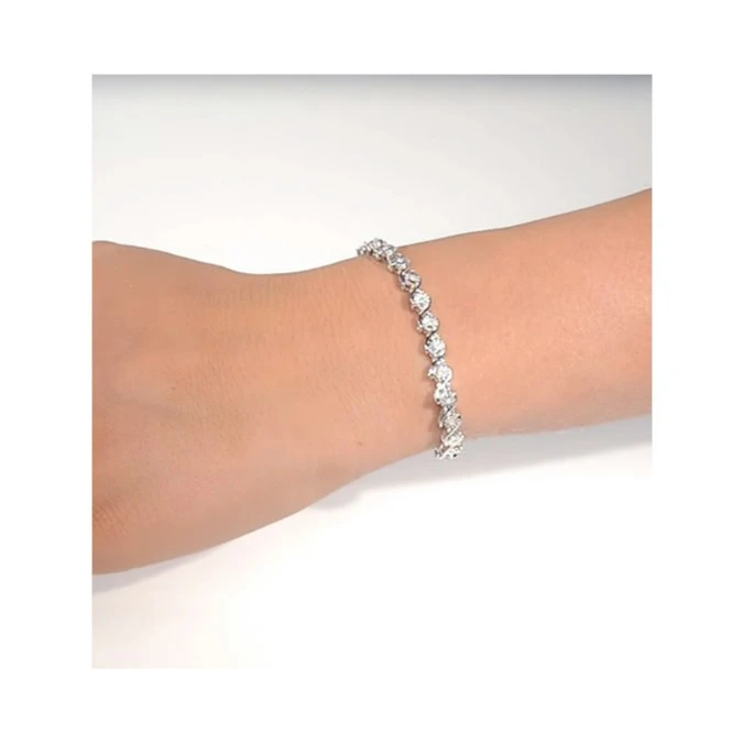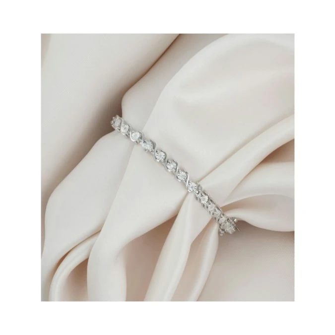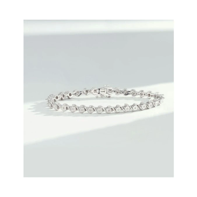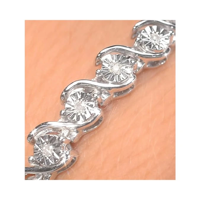 This eye catching bracelet with its fine wave-design of UK hallmarked silver is accented with brilliant 0.19CT Premium Quality pave set diamonds. 18.4cm in length, it is secured with our special handcrafted clasp. This is a high quality piece at great value, ideal for important birthdays and anniversaries or as a bridal gift.