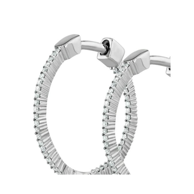 This breathtaking pair of diamond hoop earrings is the ultimate luxury gift. Their special design places ethical lab grown diamonds both on the outer front and inside back of the hoops, to create spectacular radiance. The perfect gift to make your loved one’s eyes sparkle.