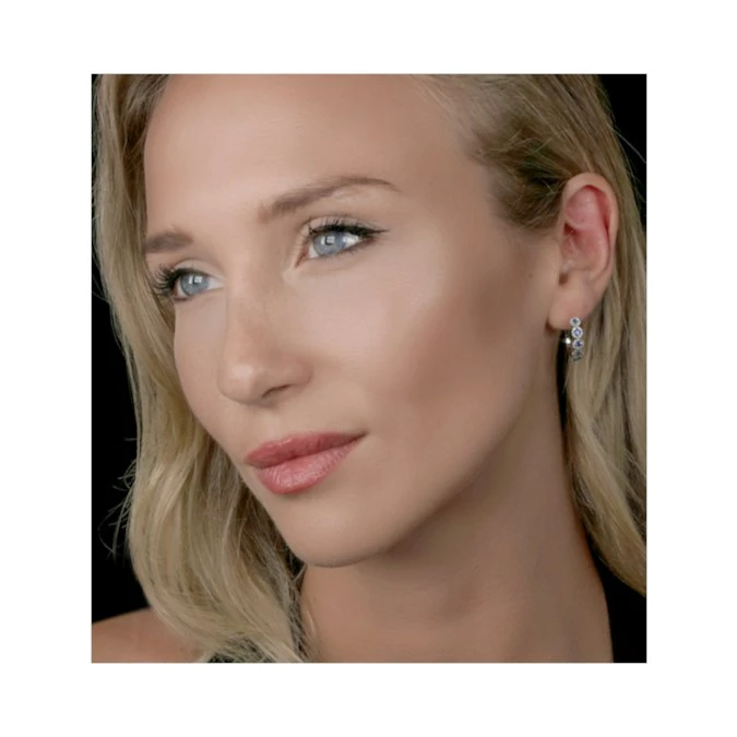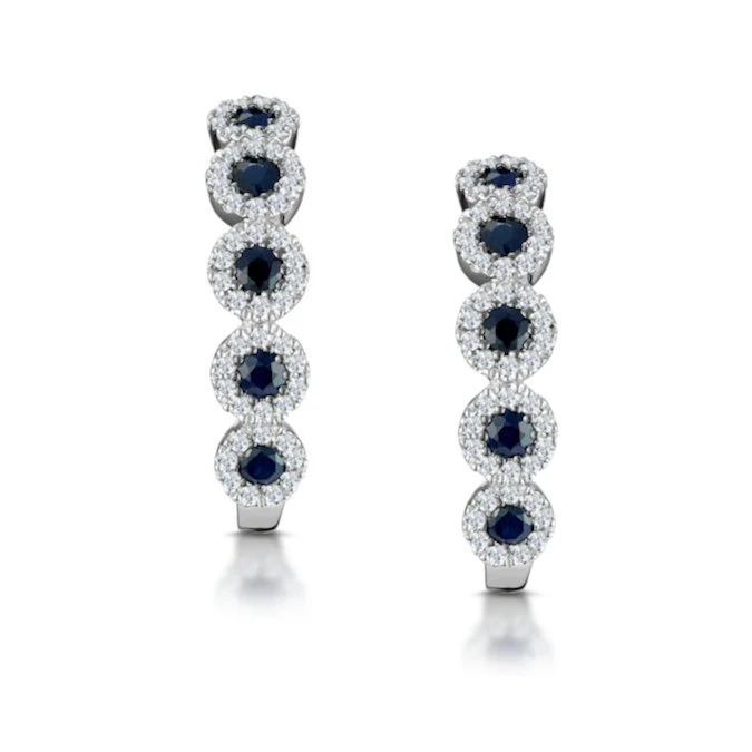 The exquisite blue sapphires and premium quality diamonds used in this chic pair of huggy earrings make them truly show-stopping. The design features five dainty sapphires on each earring, each gemstone surrounded by a sparkling halo of diamonds. A pristine white gold setting gives a splendid finishing touch. The perfect jewellery gif, sure to be treasured for many years to come.