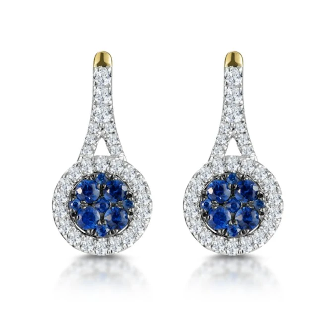 These exquisite sapphire drop earrings with their heart-stopping diamond halos are made for your most special occasions and glamorous evenings. Skillful craftsmanship combines 18K white gold with H/Si quality diamonds that scintillate beautifully. Their classic design ensures they’ll be cherished for many years to come.