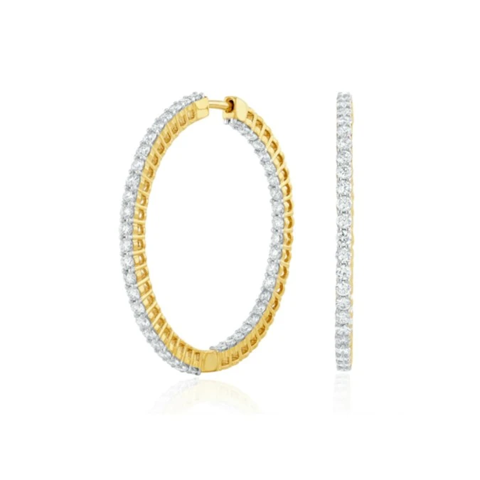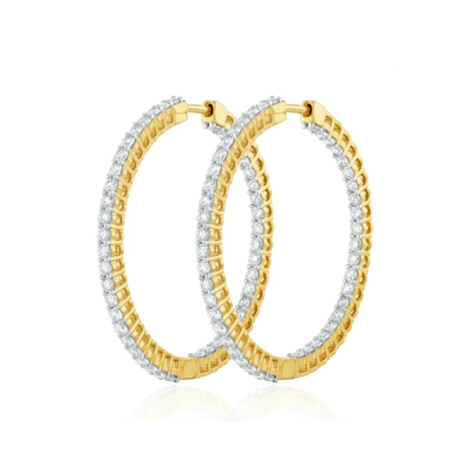 These exquisite diamond hoop earrings with their breathtaking sparkle are perfect for adding luxury to your look. Skillfully handcrafted from gold and ethical lab grown diamonds, they frame your face with stunning scintillation. The perfect gift for a special occasion.
