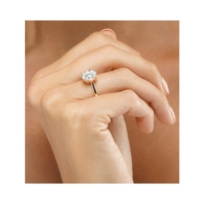If you’re looking for a romantic ring, this 1-carat diamond cluster ring is truly beautiful. It showcases sparkling lab grown diamonds, the sustainable choice. The yellow gold setting looks truly luxurious and elegant on your hand.