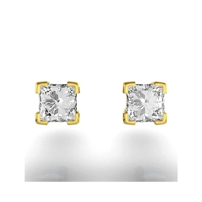 The 0.66CT of G/VS Quality Diamonds in these magnificent earrings ensures they will turn heads and delight the wearer for years to come. The princess cut diamonds radiate elegance and are complemented by the yellow gold settings which securely hold them in place.