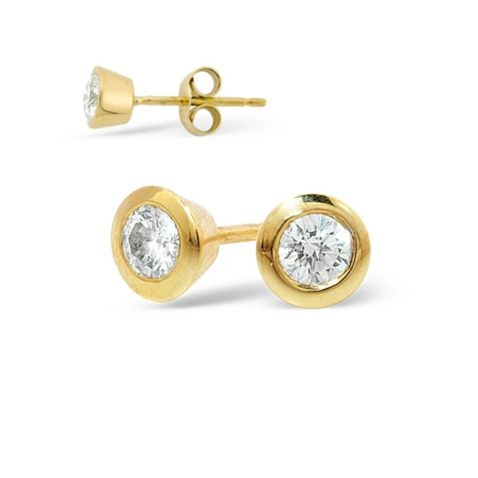 The glamorous look of these diamond stud earrings ensures they will make a lovely gift for someone special. The earrings feature a total of 0.30CT of G/VS Quality Diamonds which sparkle in the yellow gold rub over setting.