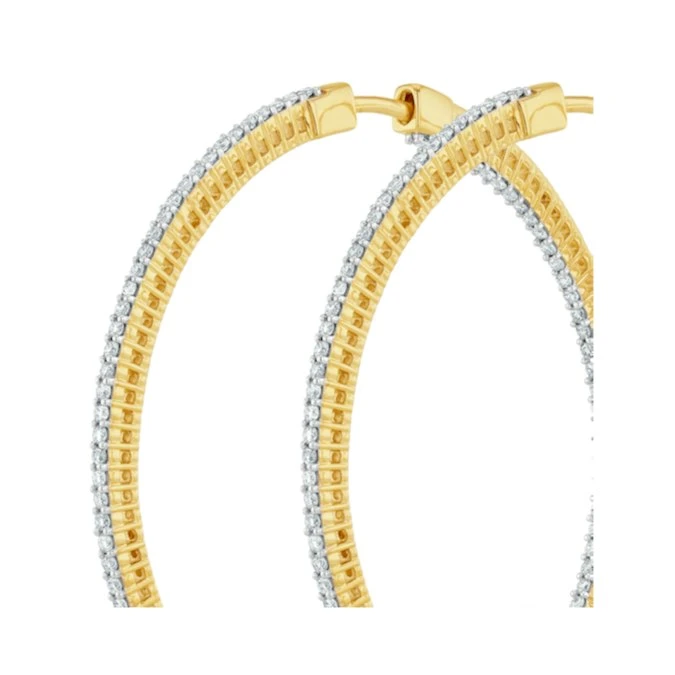 The luxurious design of these glamorous diamond hoop earrings makes them a truly stunning accessory that adds breathtaking sparkle to your look. Two carats of ethical lab grown diamonds are set in beautiful yellow gold with an elegant finish. A perfect gift idea to make someone feel extra special.