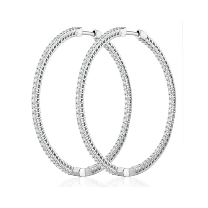 The luxurious design of these glamorous diamond hoop earrings makes them a truly stunning accessory that adds breathtaking sparkle to your look. Two carats of ethical lab grown diamonds are set in beautiful white gold with an elegant finish. A perfect gift idea to make someone feel extra special.