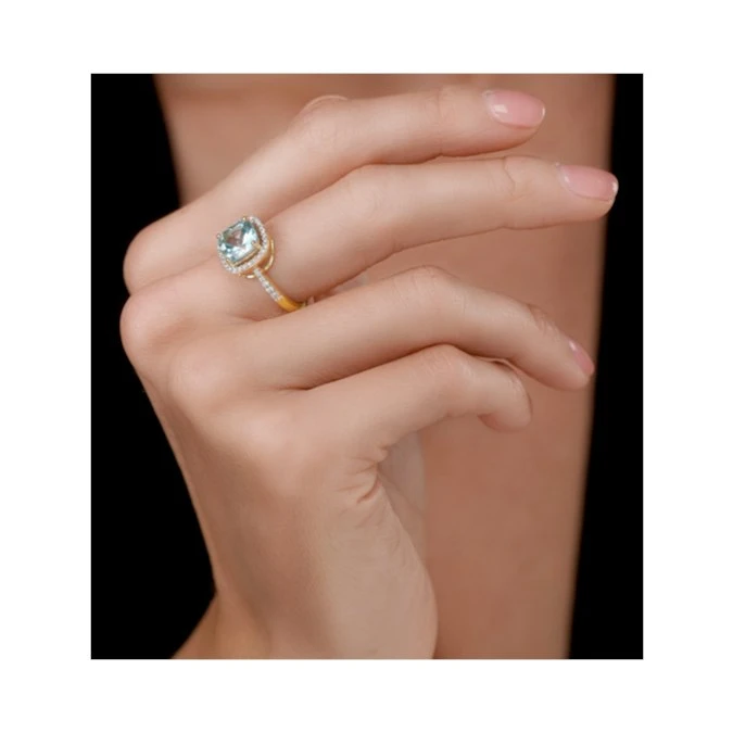 Show-stopping, sky blue sparkle and contemporary elegance describe this brilliant statement ring, which features fine blue topaz and diamonds in 18K gold. Its stunning 2CT central gemstone is accented with 0.25CT of conflict-free diamonds for a look that’s utterly luxurious.