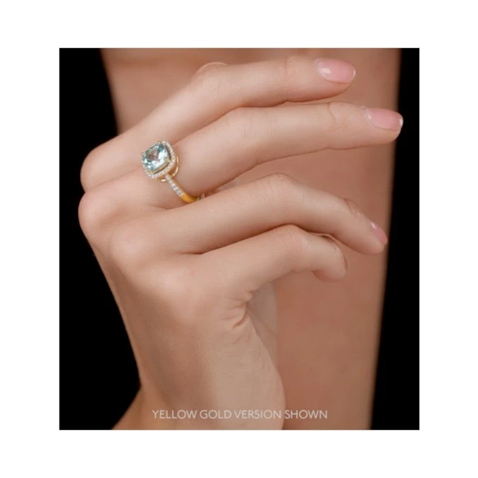 Give your loved one a beautiful gift with this stunning ring. The bright blue topaz and sustainable lab grown diamonds create enchanting sparkle on your hand. The pristine white gold band lends this elegant piece its final, irresistible touch of luxury.