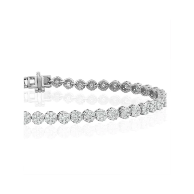 Every diamond in this exquisite bracelet showcases breathtaking sparkle that looks exquisite on your wrist. A magnificent 3CT of sparkling, sustainable lab grown diamonds are pave set within polished white gold. This is a truly exceptional piece of jewellery that will be cherished for a lifetime.