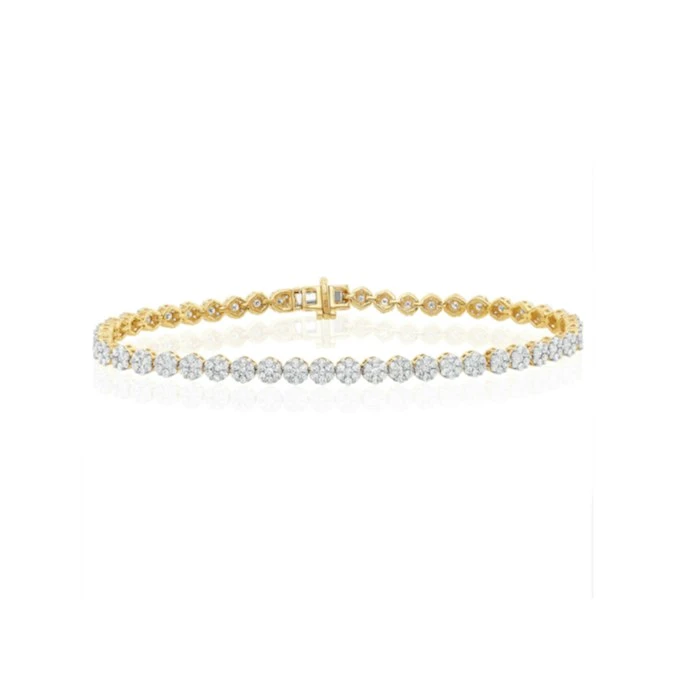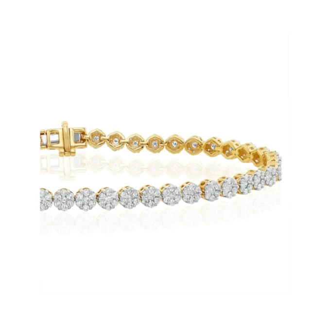 Every diamond in this exquisite bracelet showcases breathtaking sparkle that looks exquisite on your wrist. A magnificent 3CT of sparkling, sustainable lab grown diamonds are pave set within classic yellow gold. This is a truly exceptional piece of jewellery that will be cherished for a lifetime.