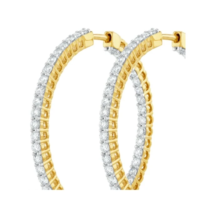 These hoop earrings with lavish diamonds are perfect for framing your face with luxurious sparkle. The handcrafted yellow gold provides a stunning setting for 4 carats of ethical lab grown diamonds. Beautifully packaged to impress, these will make the perfect gift that your loved one will cherish.