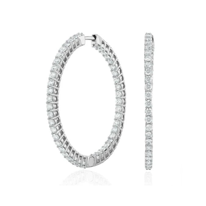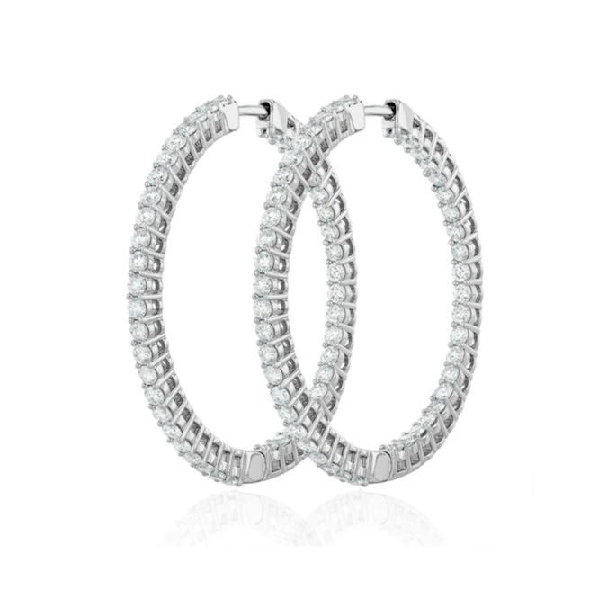 These luxurious diamond hoop earrings are perfect for framing your face with breathtaking sparkle. The handcrafted white gold provides a highly polished setting for 4 carats of ethical lab grown diamonds. Beautifully packaged to impress, these are a coveted gift that your loved one will cherish.