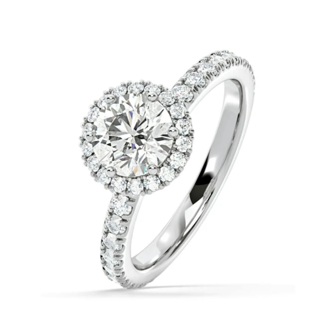 A timeless piece, this beautiful 1.70CT lab grown diamond halo ring with sidestones is a perfect symbol of your love. It boasts an exquisite G/Vs1 solitaire certified by IGI, one of the world’s most respected diamond quality grading institutions. Handcrafted in a sleek platinum setting, it makes the hand look elegant and luxurious.