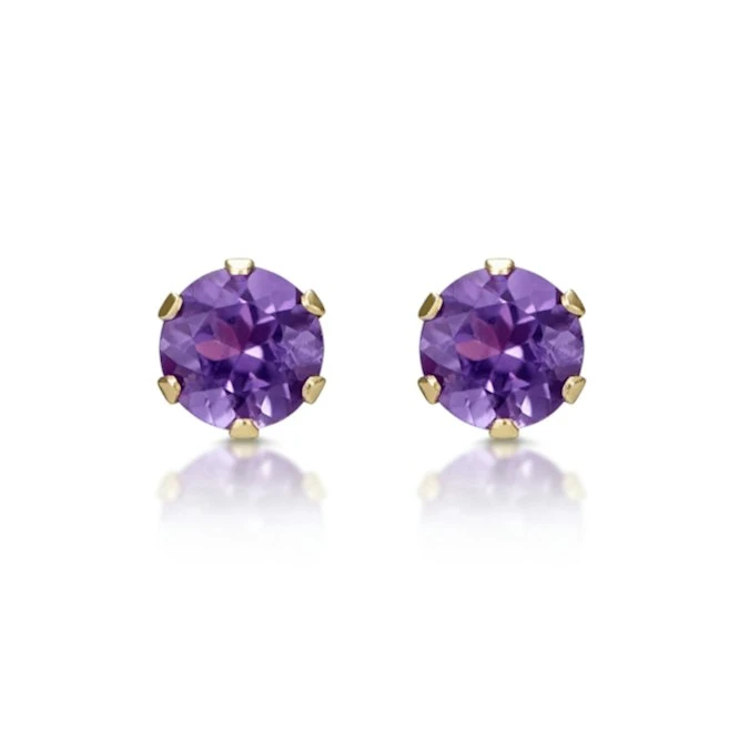 This elegant pair of earrings features two stunning round amethyst gemstones measuring 4mm which are claw set within 9K yellow gold. These gorgeous earrings would be a beautiful present for a special occasion or a lovely treat for yourself.