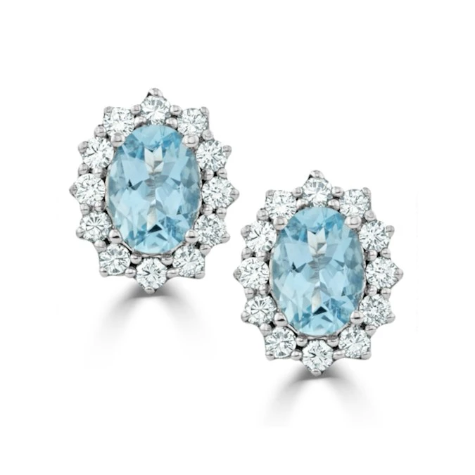 A brilliant pair of Aquamarine Earrings in 18K White Gold. Claw setting. 0.50CT of H/SI quality diamonds. Free UK delivery and a 5 year guarantee.