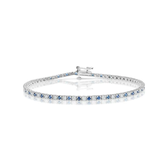 This alluring blue sapphire and diamond bracelet evokes sheer elegance and luxury on your wrist. The setting, made of the finest white gold, shows off 1.00CT of ravishing blue sapphires and 1.00CT of sparkling H/SI quality diamonds. Exceptionally beautiful, this bracelet is the perfect accessory for any occasion, easily converting your look from day to evening.