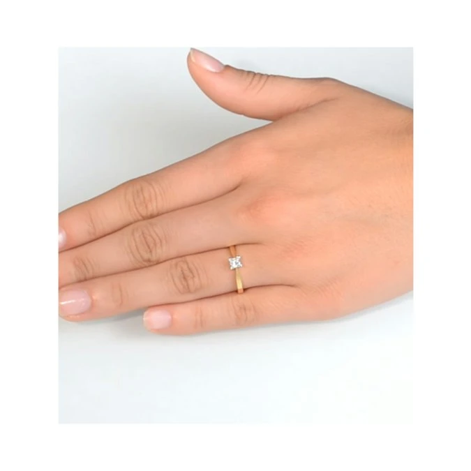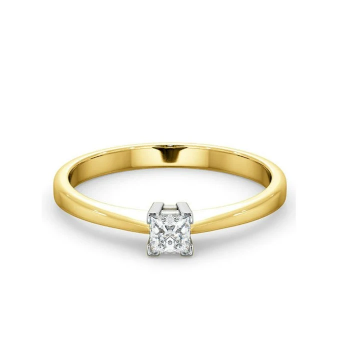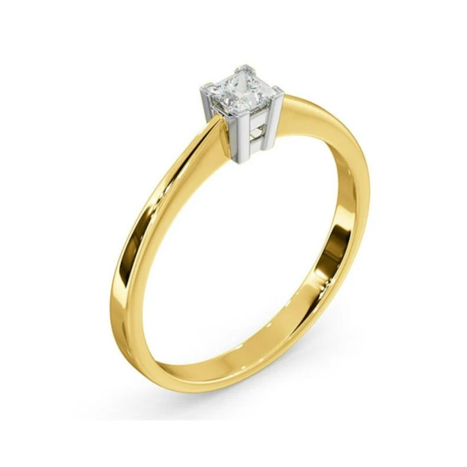 This elegant Lauren Yellow Gold engagement ring features a princess cut 0.25CT G-H/SI Quality Diamond which glistening irresistibly. The beauty of the diamond is further enhanced by the sheen of the 18K Yellow Gold band which surrounds the ring. No woman could resist such a stunning ring.