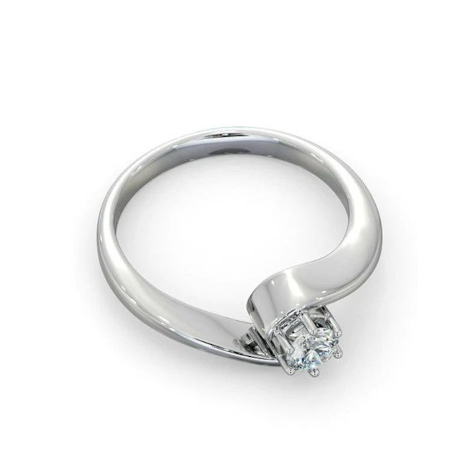 A stunning contemporary take on a classic design, the Leah white gold engagement ring would make a beautiful ring to pop the question with. This magnificent ring features a 0.25CT G-H/SI1 Quality Diamond which glistens in a six claw setting and is finished with an 18K twisted white gold band. An excellent ring to make your proposal a success.