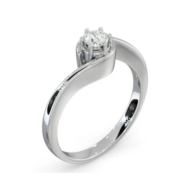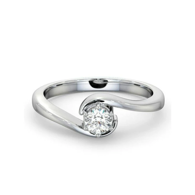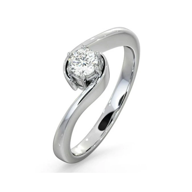 A stunning contemporary take on a classic design, the Leah white gold engagement ring would make a beautiful ring to pop the question with. This magnificent ring features a 0.33CT G-H/SI1 Quality Diamond which glistens in a six claw setting and is finished with an 18K twisted white gold band. An excellent ring to make your proposal a success.