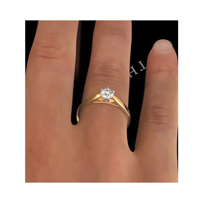 A timeless classic, this low set Chloe 18K Yellow gold ring would be an excellent choice to pop the question with and will continue to delight and sparkle for many years to come. The 0.50CT H-I/I1 Quality Diamond glistens from the centre of the band and catches the light magnificently. The ring is made complete with the 18K Yellow gold band which enhances the shine of the diamonds.