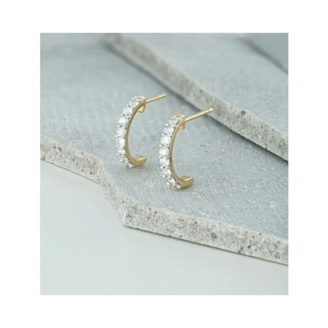 These luxurious diamond huggie earrings are designed to look as stunning as they feel comfortable. They feature ethical lab grown diamonds in beautiful yellow gold and offer exquisite sparkle to highlight your face. With classic style, they are the perfect gift idea for any occasion.