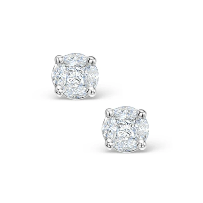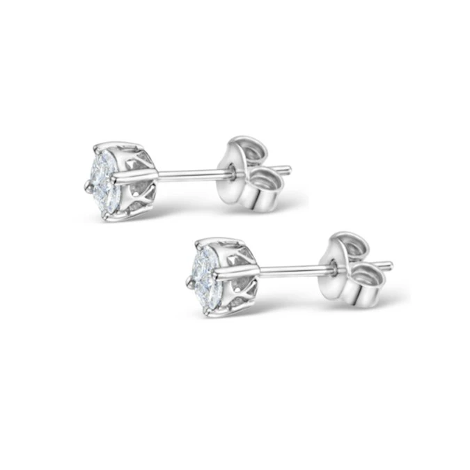 Get the look of a much larger diamond with the Galileo diamond setting. Using a clever method of setting smaller diamonds to perfectly fit, we are able to create the illusion of a single diamond. In these earrings, the look of the 0.30cts of Diamonds are equal to a pair of diamonds with a 1.00ct total diamond weight.