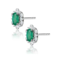 0.50ct Emerald And Stellato Diamond Cluster Earrings In 9K Gold