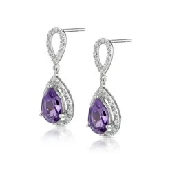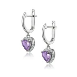 Stellato Amethyst And Diamond Pave Heart Earrings In 9K White Gold