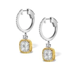 18K White Gold An Gelina 3ct Diamond And Yellow Diamond Halo Earrings