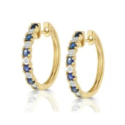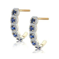 Sapphire 0.71ct And Diamond Hoop Earrings In 9K Gold
