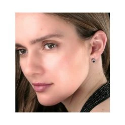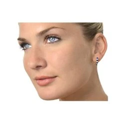 Sapphire 6mm X 4mm And Diamond 9K White Gold Cluster Earrings B3737