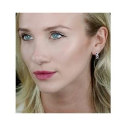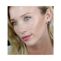 Sapphire And Lab Diamond Cluster Earrings 7 X 5mm In 18K White Gold