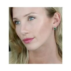 Emerald And Lab Diamond Cluster Earrings 7 X 5mm In 18K White Gold