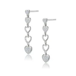 Stellato Collection Drop Diamond Heart Earrings In 9K White Gold