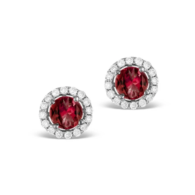 Razzle-dazzle your loved one with these simply stunning ruby and diamond earrings. The glamorous look of these show-stopping earrings is down to the central deep red rubies which are edged on every side with a total of 0.34CT of H/SI Quality Diamonds and finished in sleek 18K white gold.