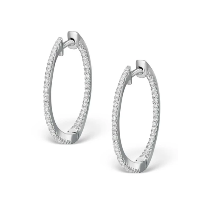 These exquisite diamond hoop earrings with their breathtaking sparkle are made for glamorous evenings. Skillfully handcrafted combining 18K white gold and 0.54CT of high quality diamonds, they scintillate with luxurious flirtation.