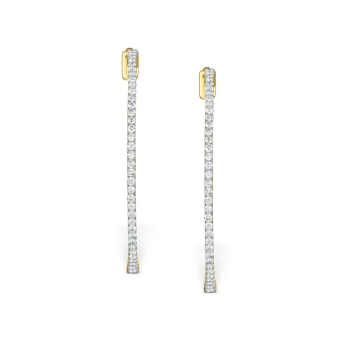 With extravagant luxury that’s perfect for accessorizing glamorous evenings out, these magnificent handcrafted hoop earrings are made with 18K yellow gold and 1.50CT round cut diamonds. Designed to woo the eye, their skillful handcrafted finish will give you a lifetime of style and joy.