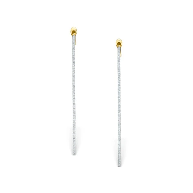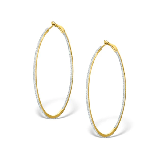 The spectacular design of these glamorous diamond hoop earrings makes them a truly luxurious accessory to add sparkle to your evenings. One whole carat of H/SI quality diamonds are set in beautiful 18K yellow gold for unrivalled sparkle.