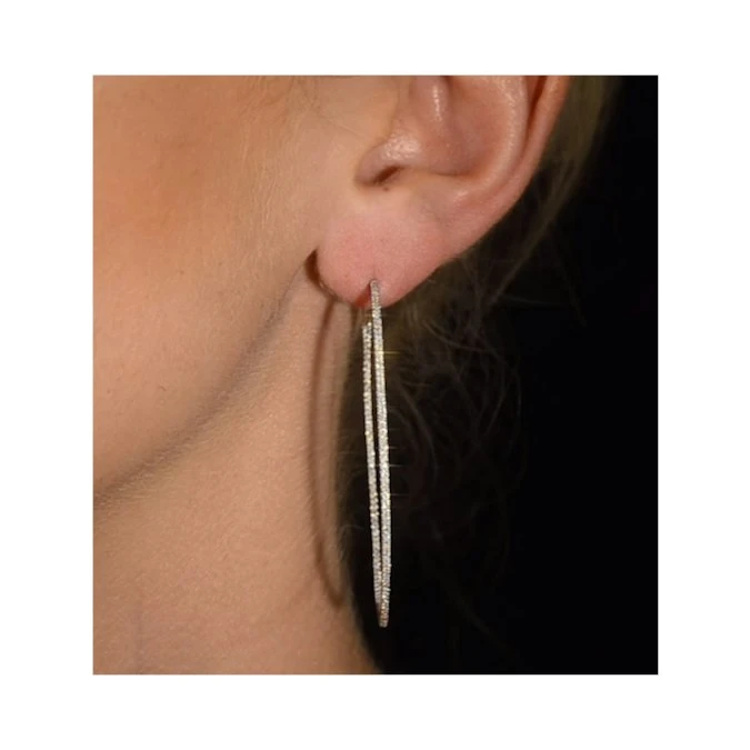 The showstopping elegance of these diamond hoop earrings is all the more striking because of the high quality H/Si diamonds used in them. Handcrafted with round diamonds in a claw setting to let in maximum light and create spectacular sparkle, they’re sure to cause a stir wherever you go.