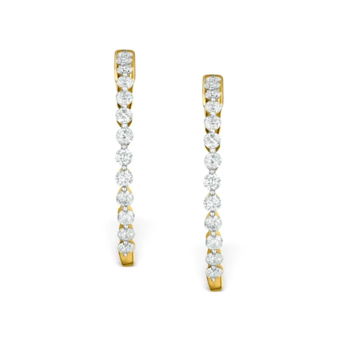 These captivating diamond hoop earrings evoke luxury, elegance and charm. With a total of 3.06 carats of rubover-set diamonds, they make a luxurious accessory for anyone who appreciates fine diamond jewellery.