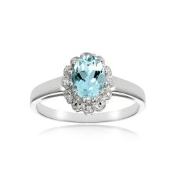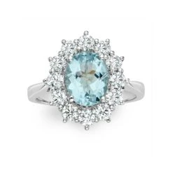 Aquamarine 1.7ct And Diamond 1.00ct Cluster Ring In 18K White Gold