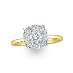1 Carat Lab Diamond Cluster Solitaire Ring H/Si In 9K Gold