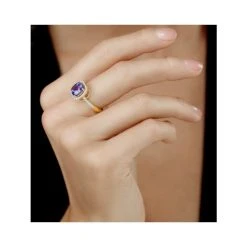 Tanzanite And Diamond Oval Halo Ring In 18KW Gold – Asteria Collection