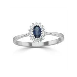 Sapphire 2.3ct And Lab Diamond 1ct Cluster Ring In 18K White Gold