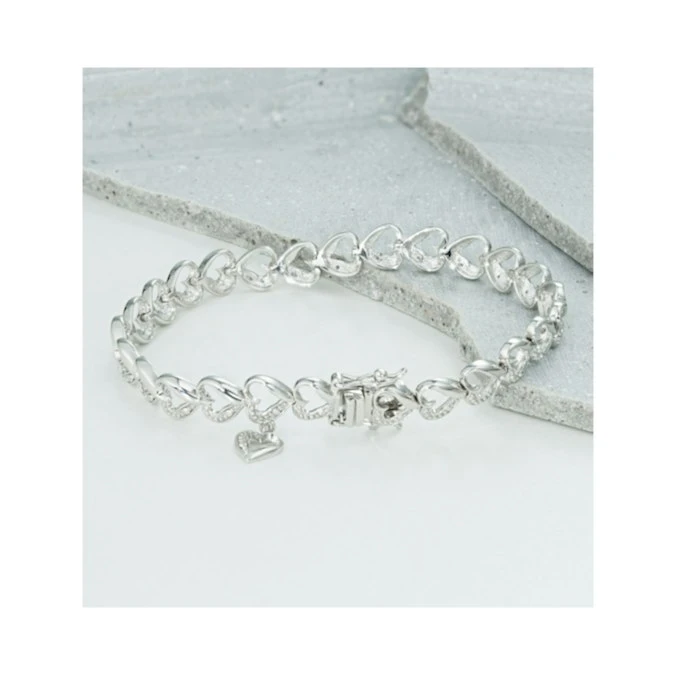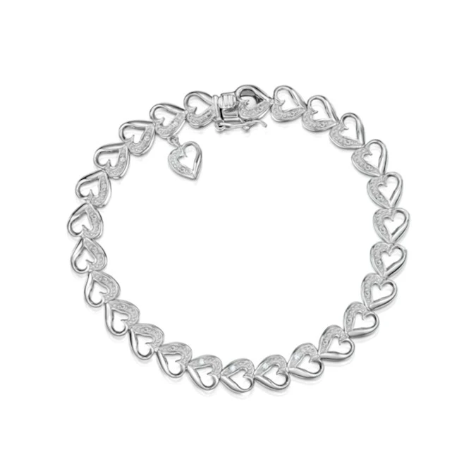 There’s no better way to say I love you than with diamonds and hearts. This gorgeous sterling silver bracelet with a linked heart design is pave set with sparkling conflict-free diamonds and features our beautiful, secure clasp. It’s an ideal gift if you’re thinking of surprising her with a special birthday, Christmas or Valentine’s gift.