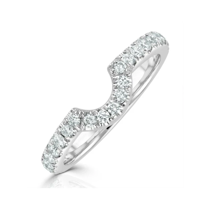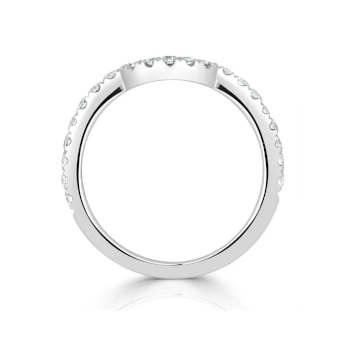 This luxurious and sparkling diamond wedding ring is handcrafted with an elegant curve to accommodate one of our beautiful Diana engagement rings or any other engagement ring in a similar style. Expertly designed, it features exquisite G/Si diamonds set in the finest white gold and is a breathtaking choice to celebrate your love.