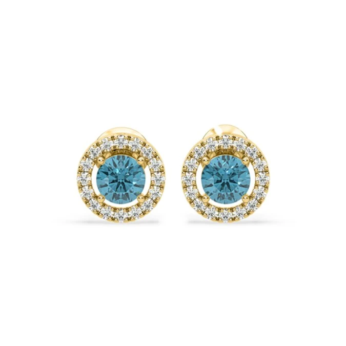 These exquisite Ella earrings are part of our new Elara Collection that showcases the breathtaking beauty of sustainable coloured lab diamonds. The magnificent blue lab diamond solitaire looks elegant in a yellow gold setting, catching the eye with its unrivalled brilliance. An unforgettable, ethical gift your loved one will cherish forever.