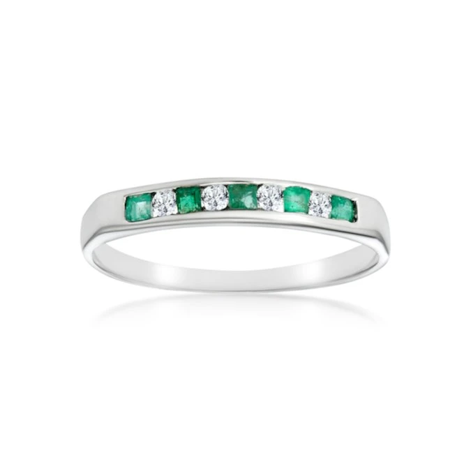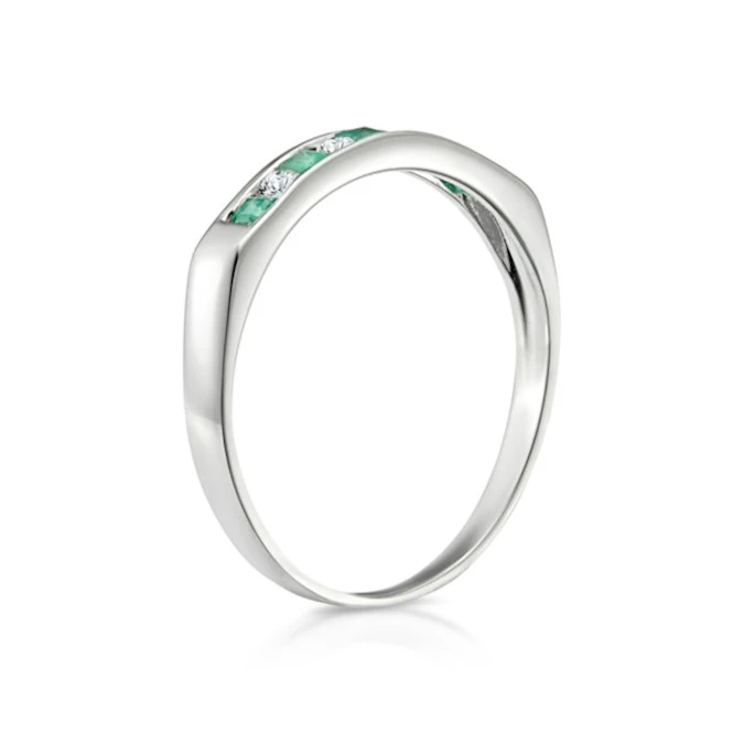 This special emerald ring features five stunning 0.15CT of emeralds which contrast magnificently with the 0.09CT of Premium Quality Diamonds in a channel setting. Emeralds are the birthstone for May so this emerald ring would be a gorgeous gift for anyone born in this month.