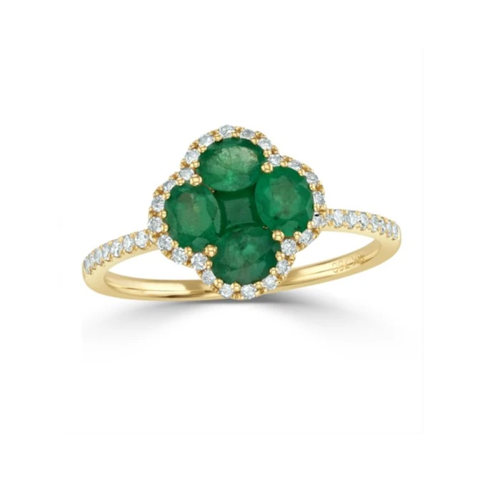 This beautiful emerald ring is an exquisite piece which you can cherish for years to come. The gorgeous vivid green emeralds and dazzling diamonds in warm yellow gold draw the eye and flatter your hand. A luxurious ring that’s guaranteed to make your occasion memorable.