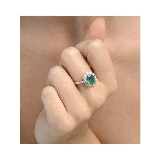 If you’re looking for a special gift for someone you love, this magnificent emerald ring will be a sure success. With a rare and luxurious emerald centre stone that glimmers with exquisite green colour, it looks simply stunning on the hand. The setting is made from polished white gold, and framed with sparkling, sustainable lab grown diamonds that are as ethical as they are beautiful.